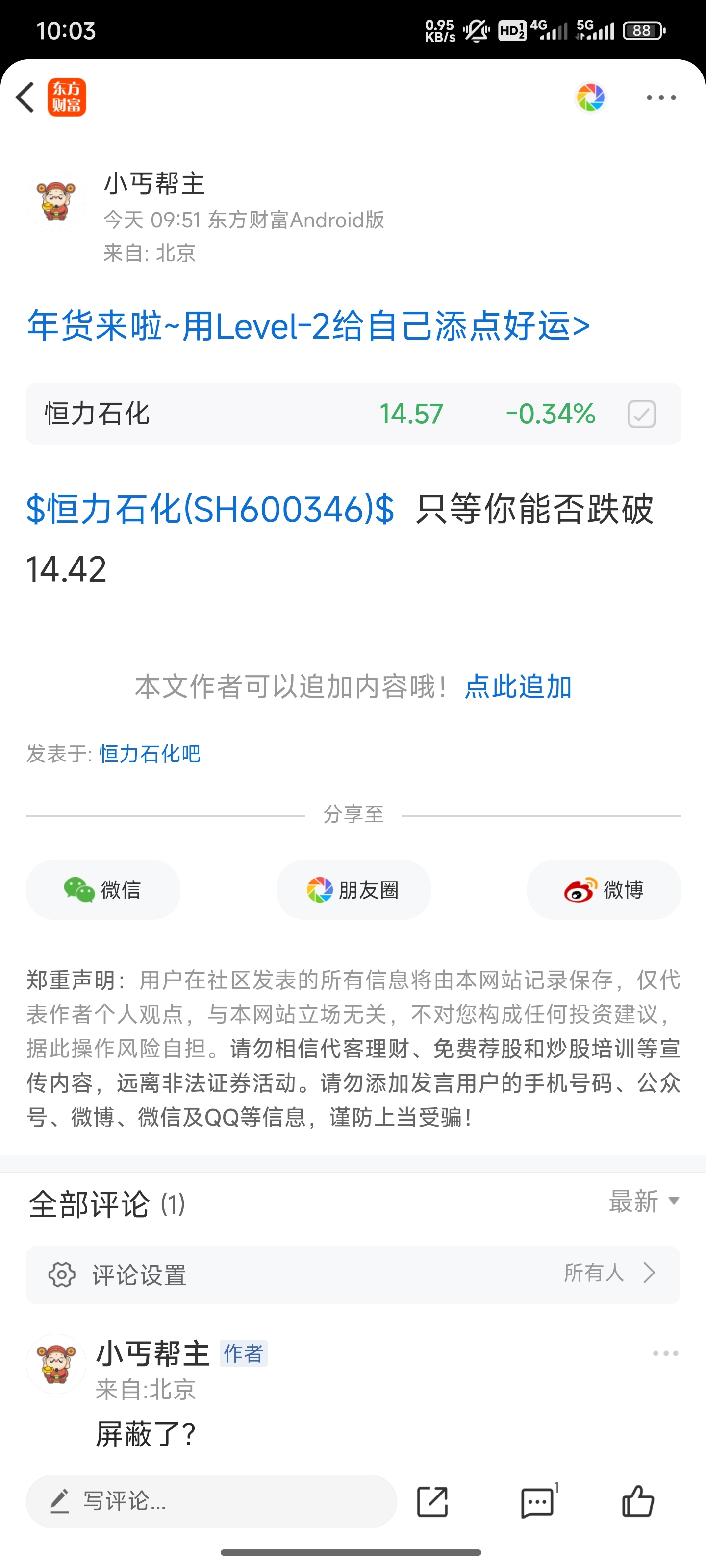 $恒力石化(SH600346)$ 自动屏蔽么?