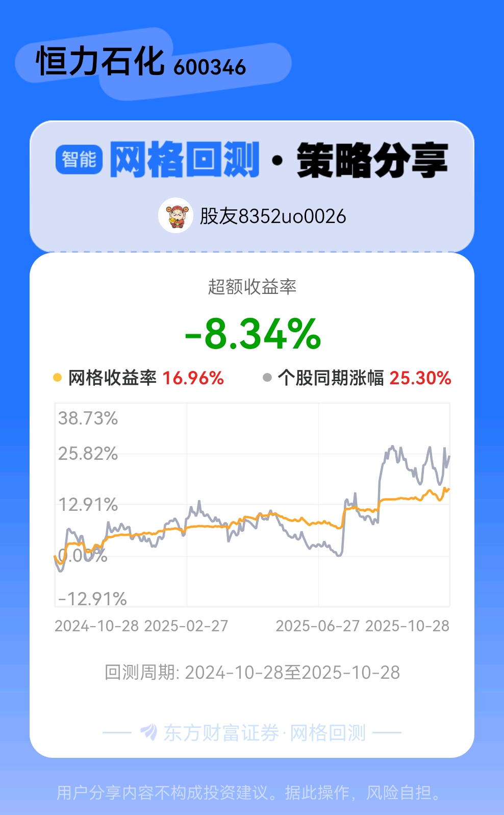 #条件单交流# #网格交易晒单#我使用网格交易回测了最关心的个股,朋友们走过路过看看我的收益~$恒力石化(SH600346)$