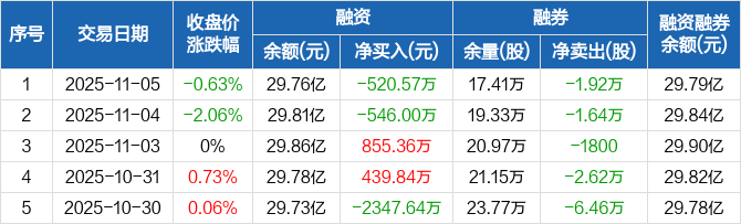 恒力石化:融资净偿还520.57万元,融资余额29.76亿元(11-05)