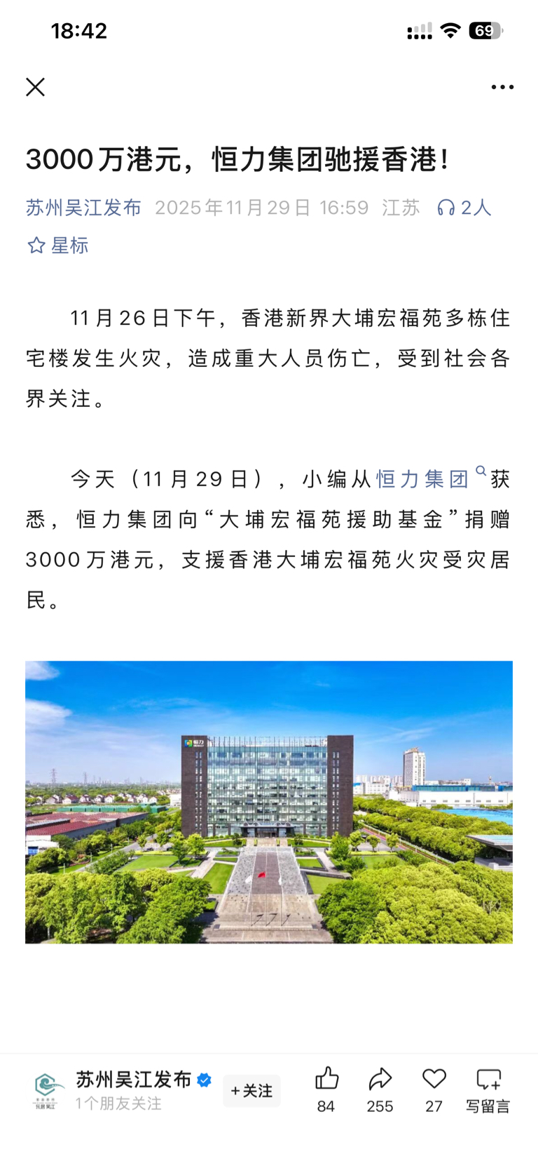 $恒力石化(SH600346)$ 捐款3000万支援香港