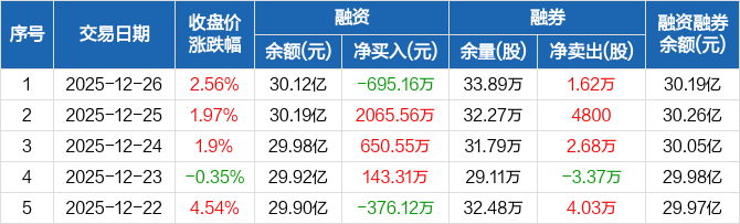 恒力石化:融资净偿还695.16万元,融资余额30.12亿元(12-26)