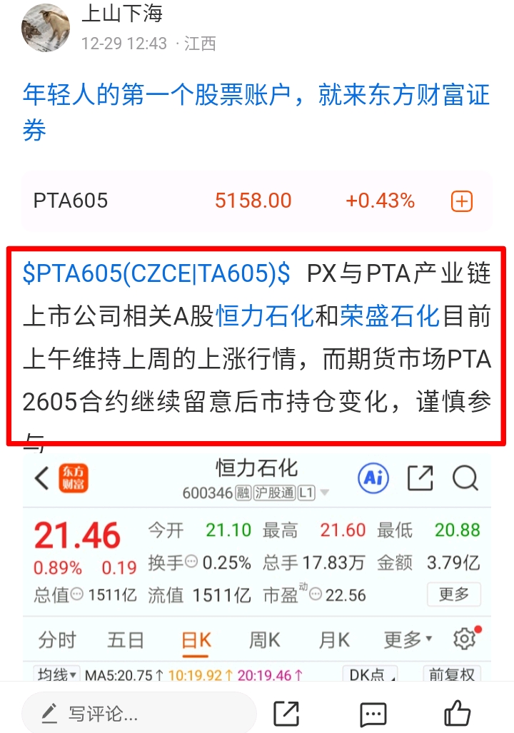 $恒力石化(SH600346)$ PX与PTA产业链恒力石化和荣盛石化等上午继续冲高。
