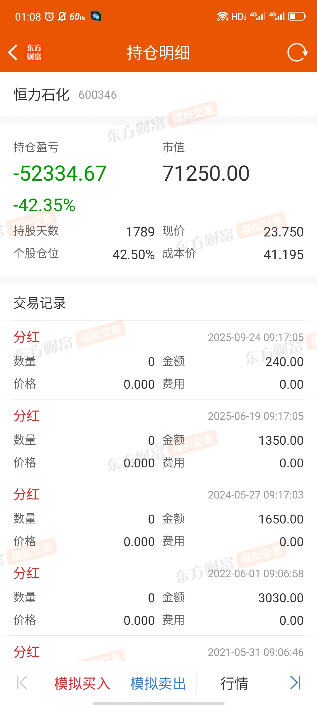 $恒力石化(SH600346)$ 模拟盘告诉你这1789天有多坑