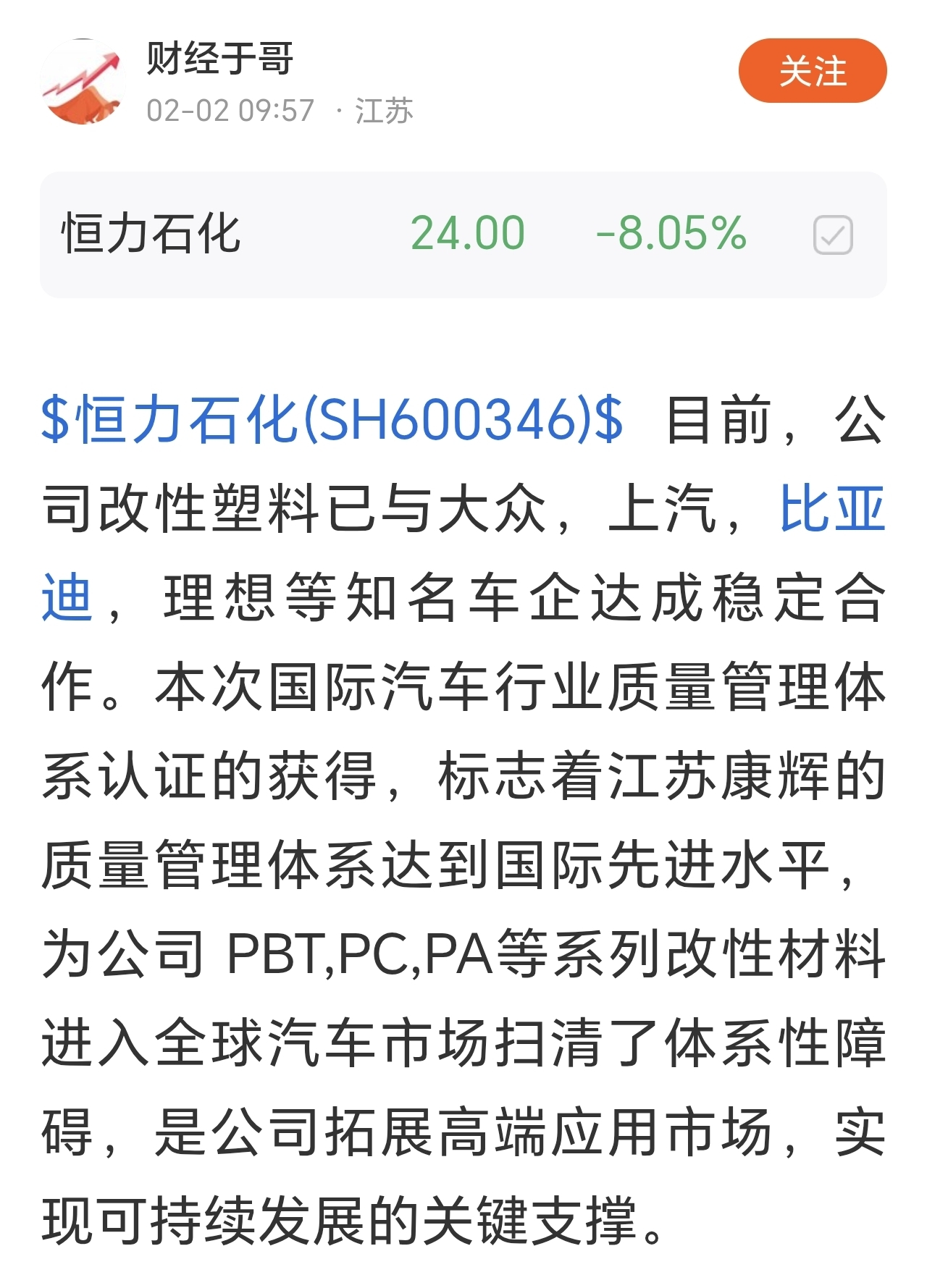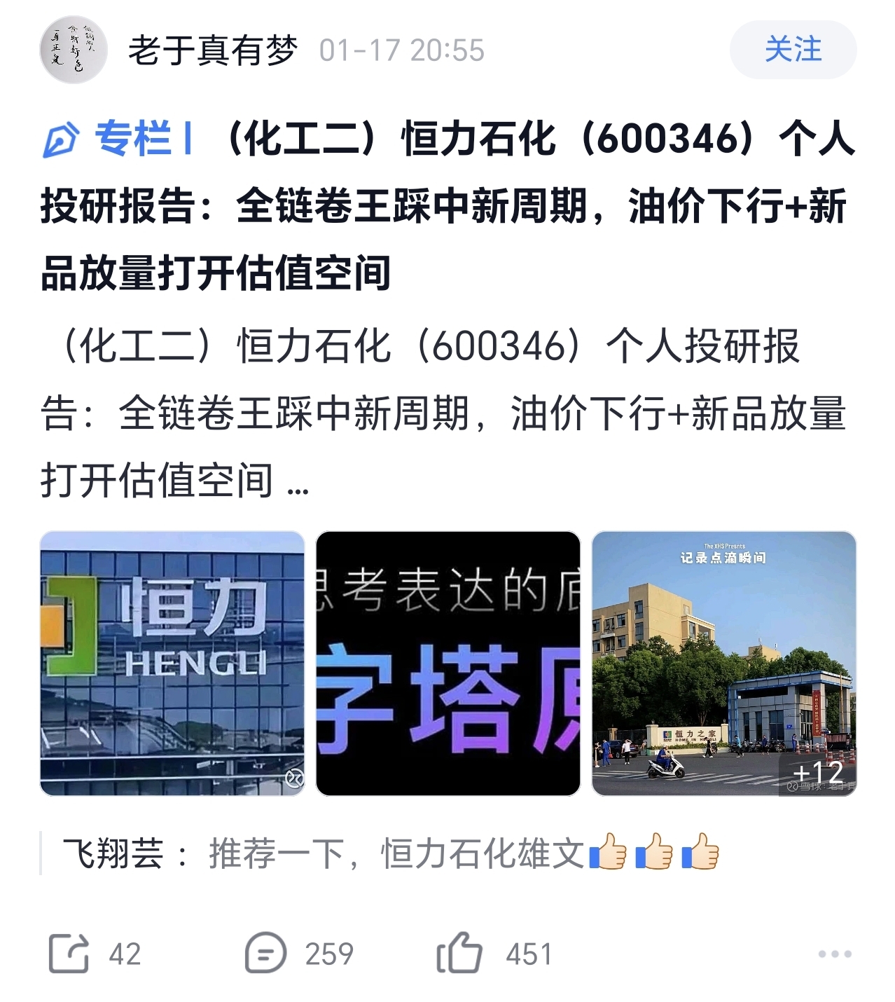 这个于哥从1月下旬不停出恒力文章,文章都快上万字了,内容的数据都是离谱不不切实际
