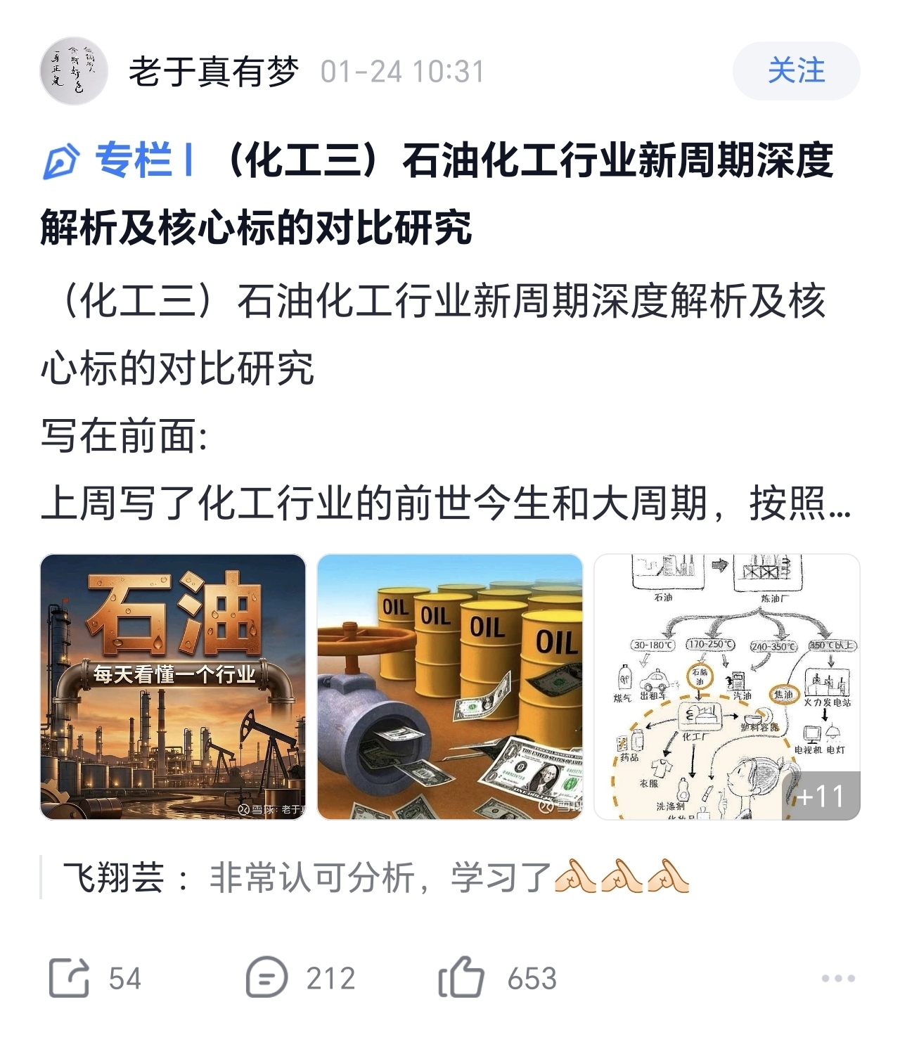 $恒力石化(SH600346)$ 这个于哥从1月下旬不停出恒力文章,文章都快上万字了,内容的数据都是离谱不不切实际,外行人看了都被他忽悠一愣一愣!也算是个大V,这么多粉丝算是被他收割的一波韭菜,变现能力我也算是很佩服。