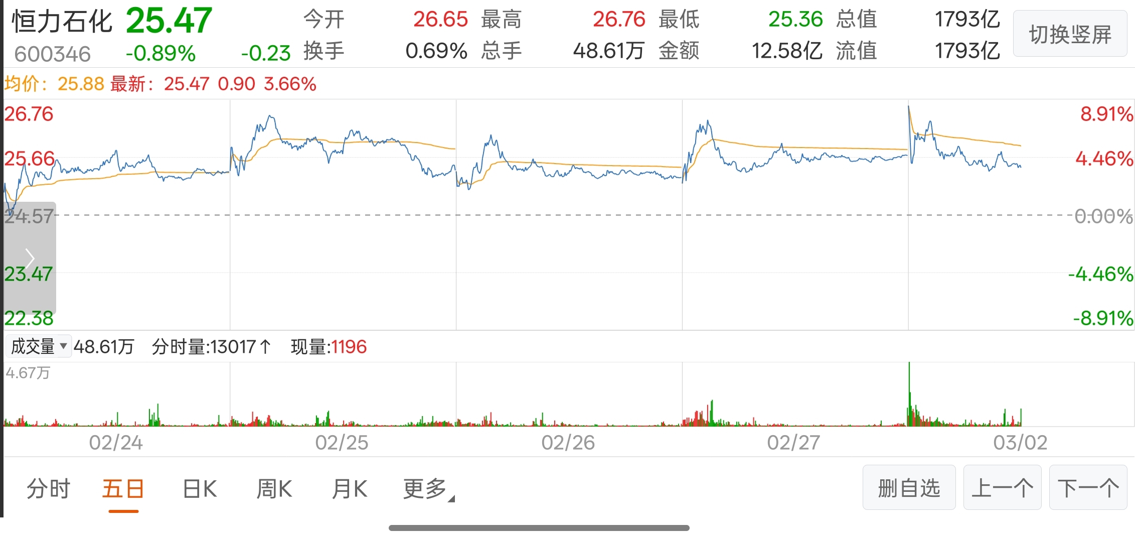 $恒力石化(SH600346)$ 结合近期走势,连续多天早盘冲高回落横盘,很显然高位出货形态!