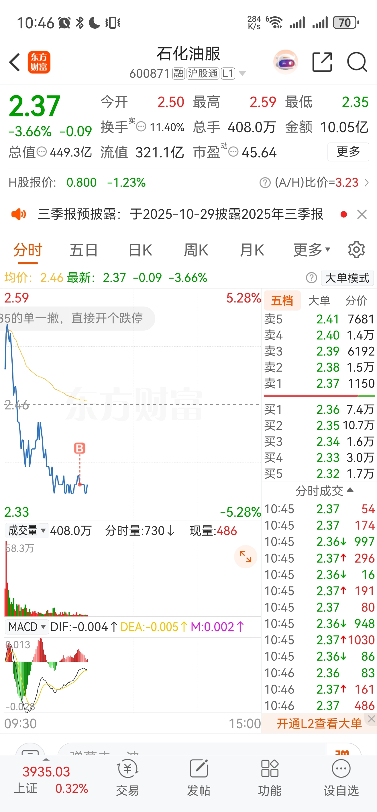 感谢华阳,卖了成功在石化油服五日均线上低吸到了!