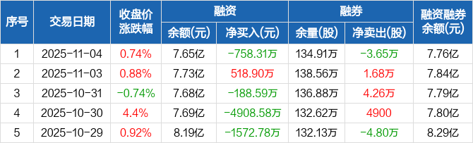 华阳股份:融资净偿还758.31万元,融资余额7.65亿元(11-04)