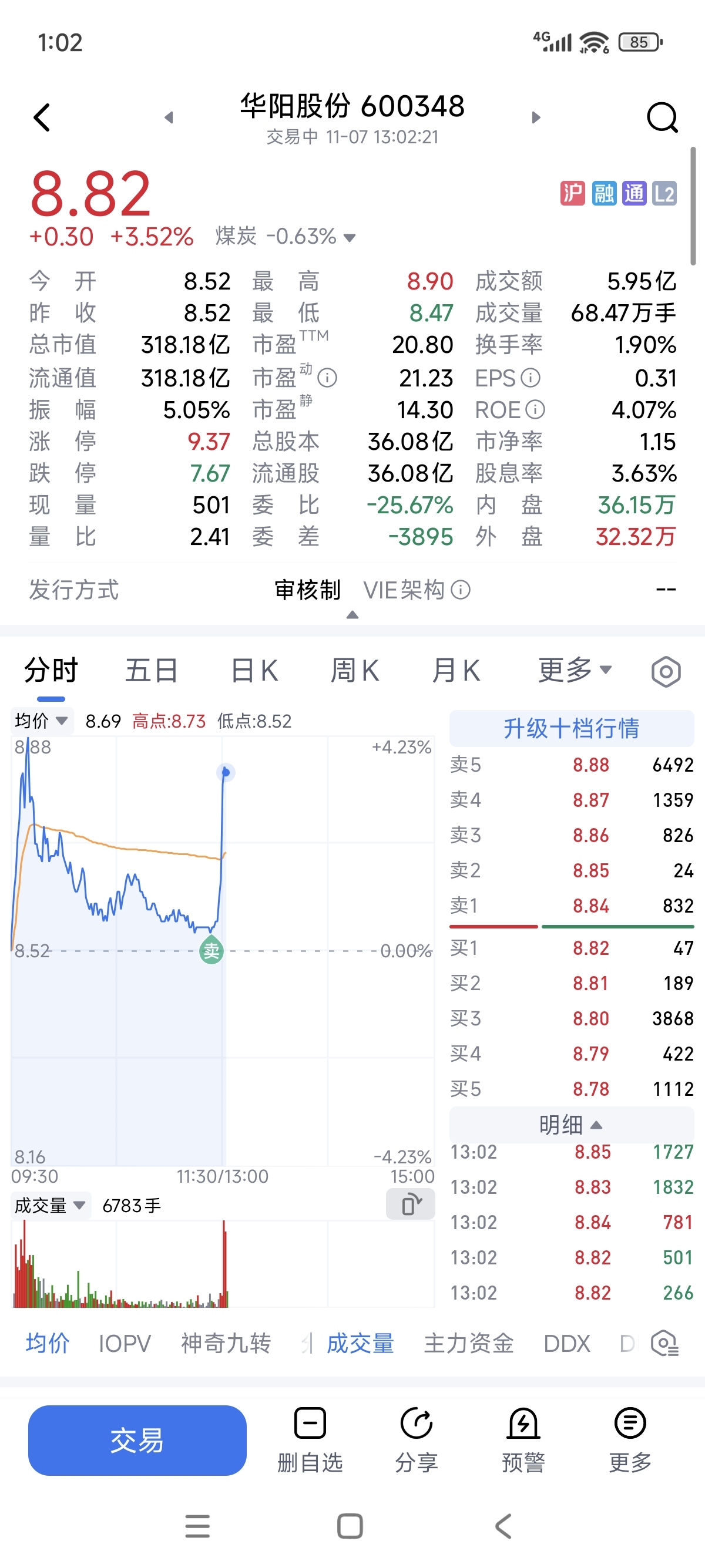 $华阳股份(SH600348)$ 哦,原来是差我这一点