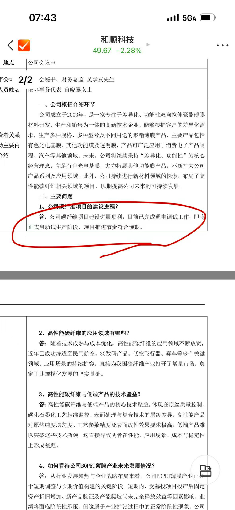 和顺科技T1000,T1100,M级碳纤维,即将量产,对标日本东丽,解决卡脖子。