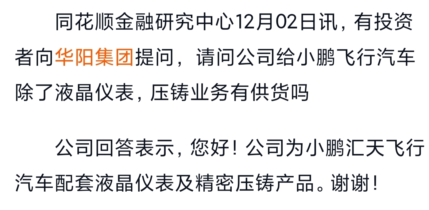 华阳有点实力,产品领域还挺广的,与小鹏也有合作!