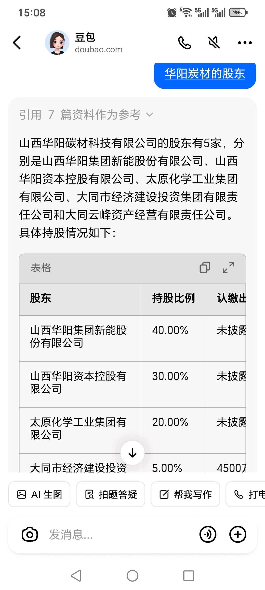 豆包给出股份答案