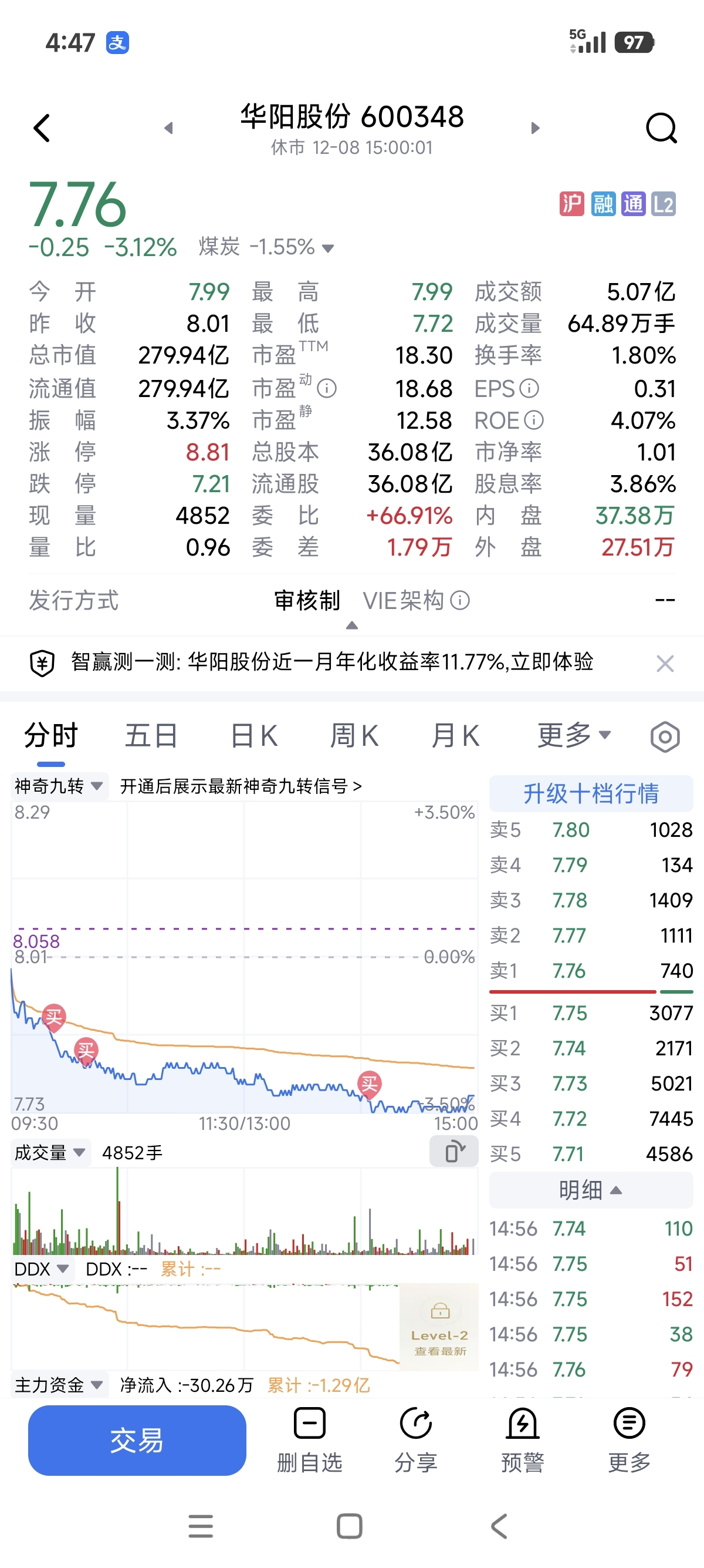 $华阳股份(SH600348)$ 没关系的没关系的,你越跌我越买