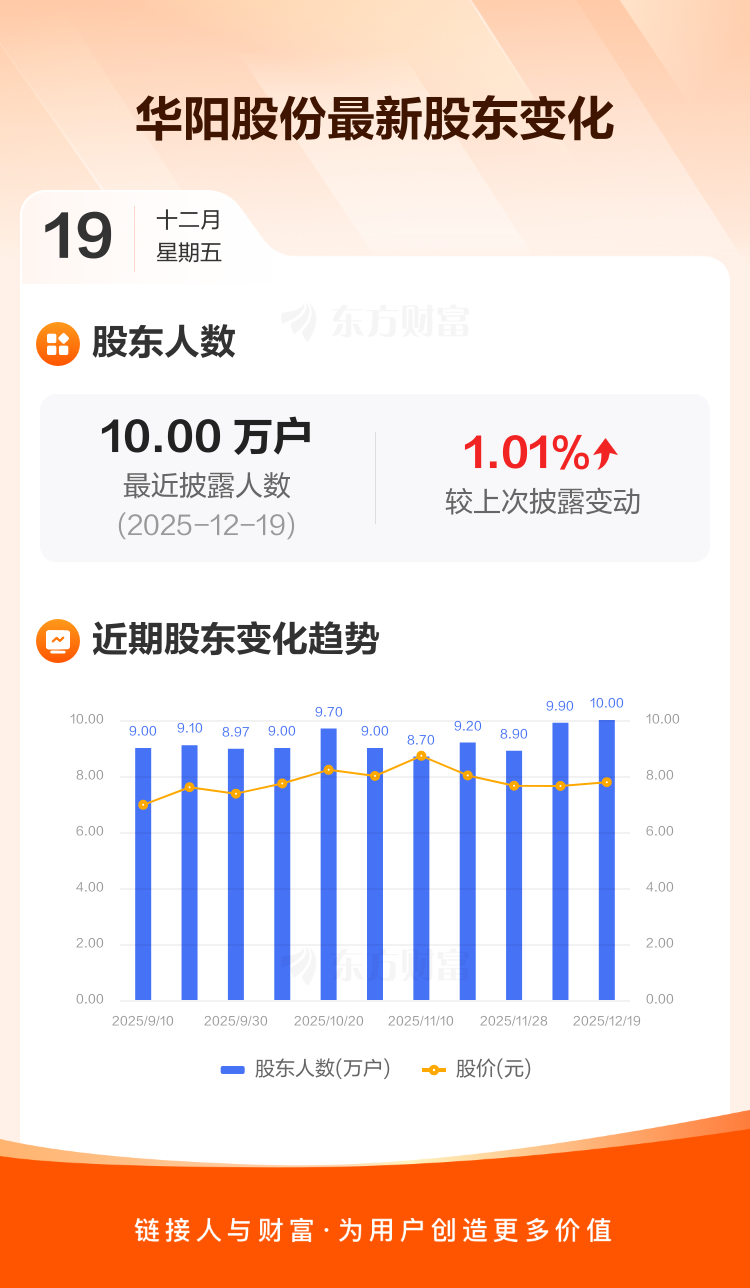 华阳股份:截至12月19日最新股东户数10.00万户,较上期增加1.01%
