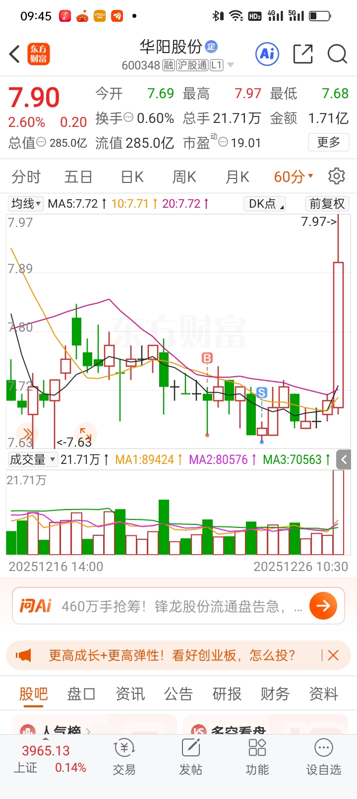 $华阳股份(SH600348)$ 呀,买卖都在最低点
