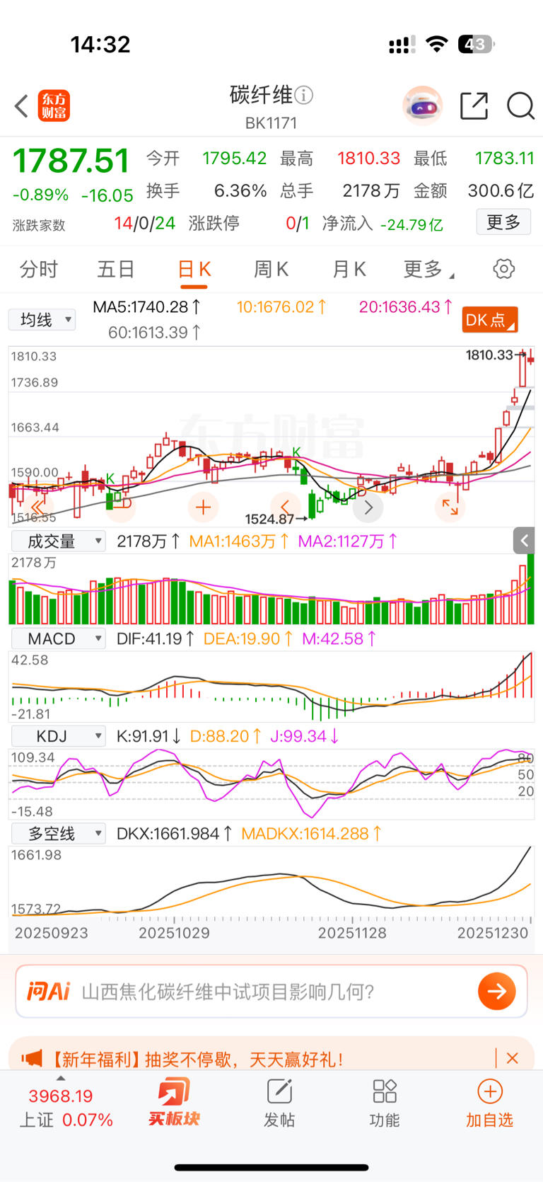 T1000碳纤维就这走势。看看碳纤维走势,你真系肉鸠酸。