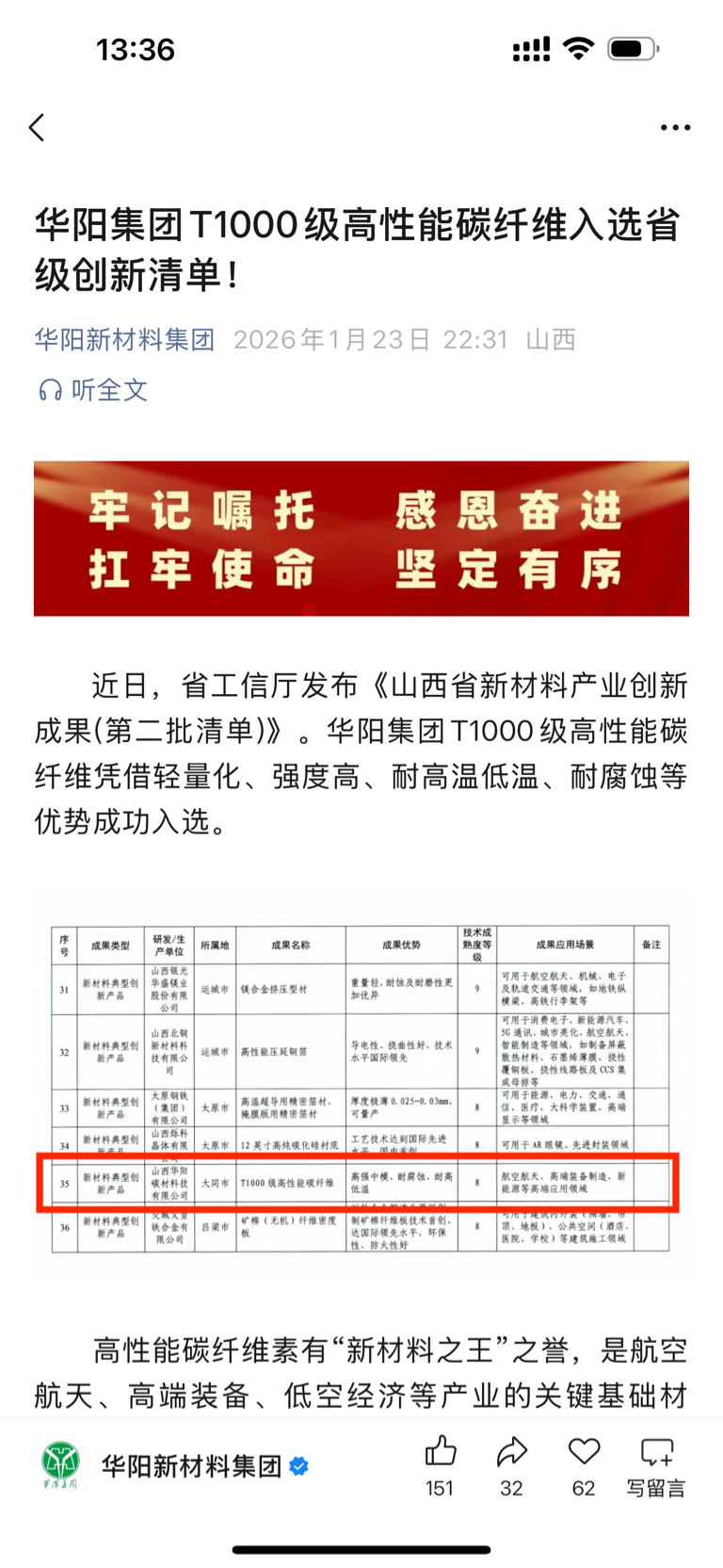 碳纤维涨,华子忘了T1000已投产,目前T1200已中试,重点在航空航天、低空经济、军工、氢能等行业应用,科技水平最高;