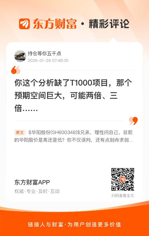 $华阳股份(SH600348)$ 针对华子这个公司大家有分歧是好事,这个市场本来就多元化的声音,这也是每天这么多人在买买卖卖的原因,但真正能长期赚大钱的人是极少的,毕竟每个人的理解度和机会成本不同,都在赚自己认知范围之内的钱。//@持仓等你五千点 : 你这个分析缺了T1000项目,那个预期空间巨大,可能两倍、三倍……