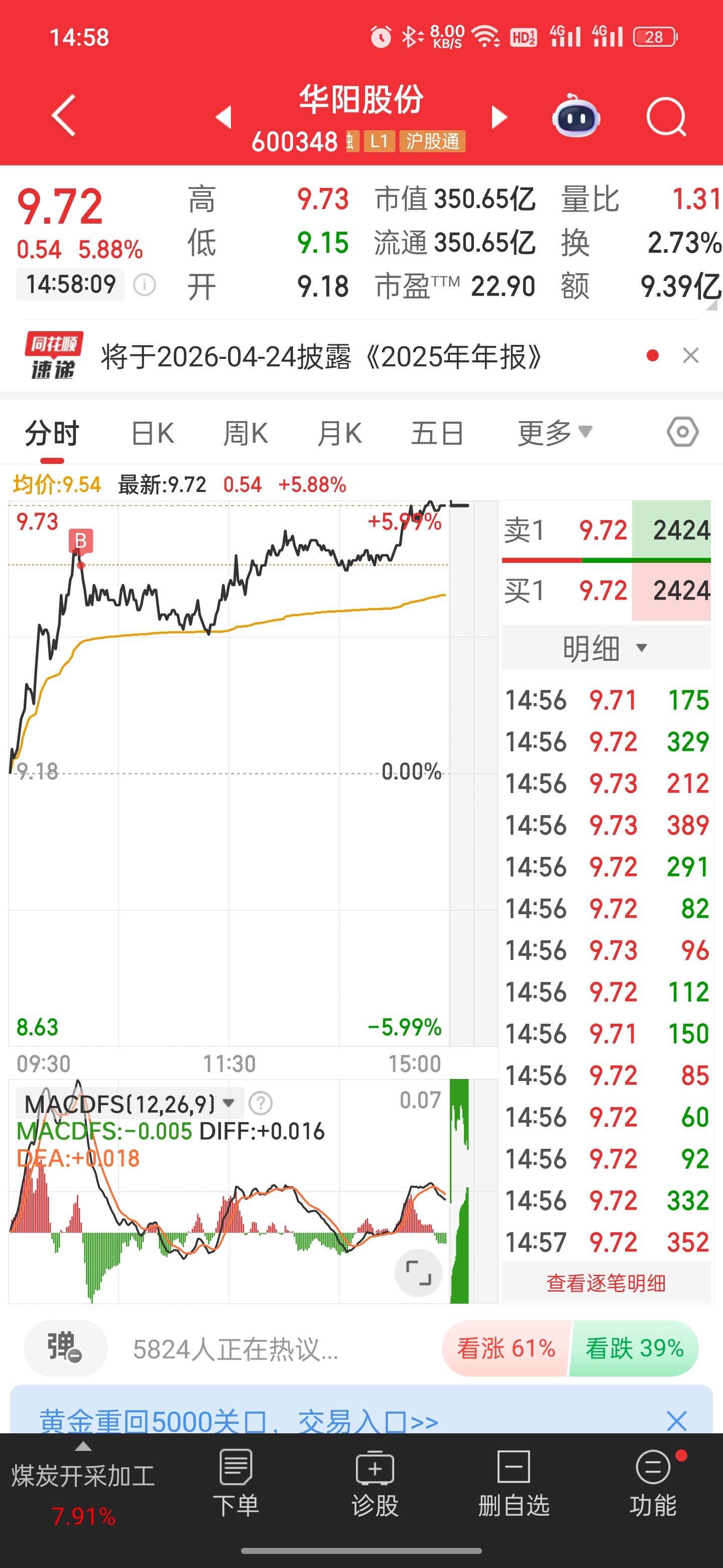 明天看突破前高,今天山顶买的差点站岗了,刚刚去彩票店打了一个华阳号码为基准的大乐