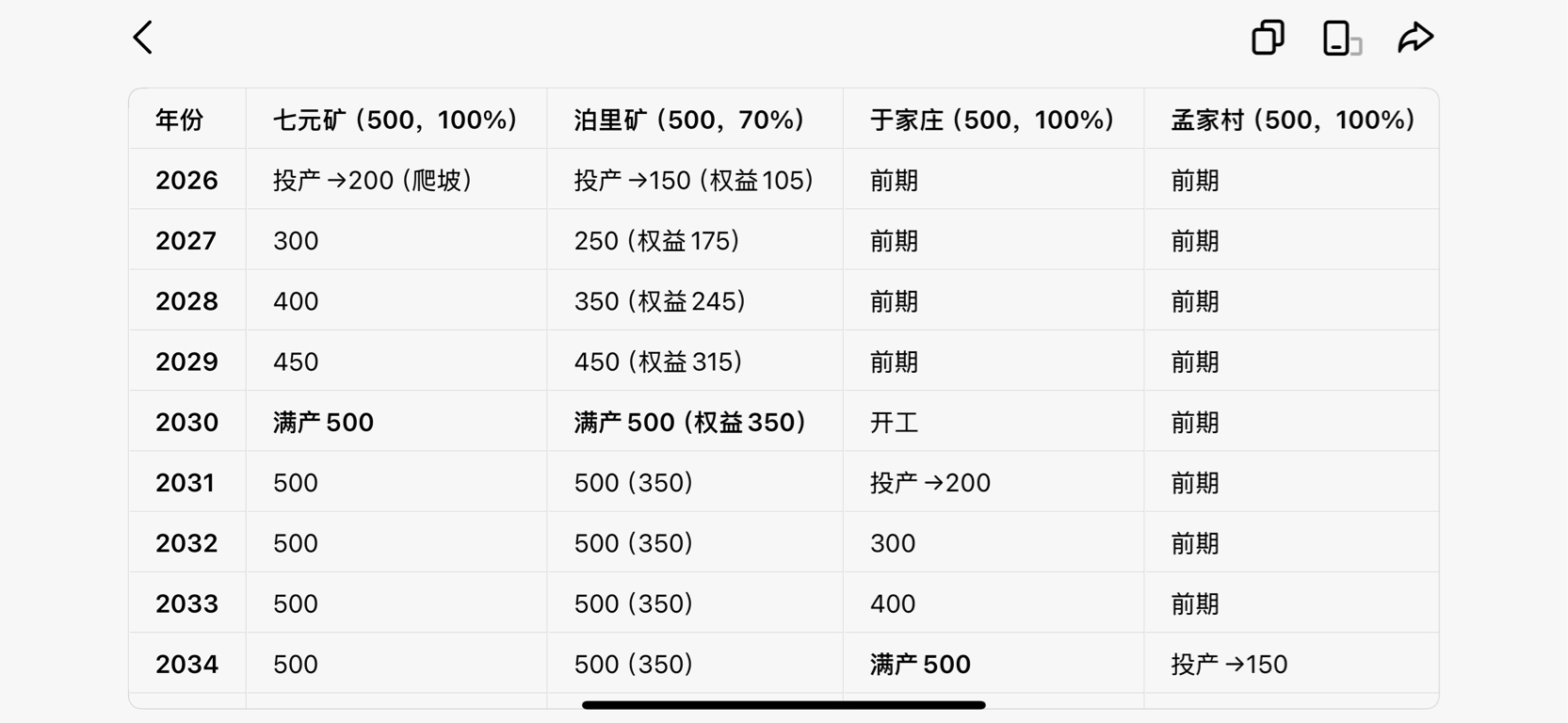 • 长期(2033–2036):孟家村投产+满产,2035年总产能达6600万吨