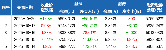 山东高速:融资净偿还55.16万元,融资余额5693.01万元(10-20)