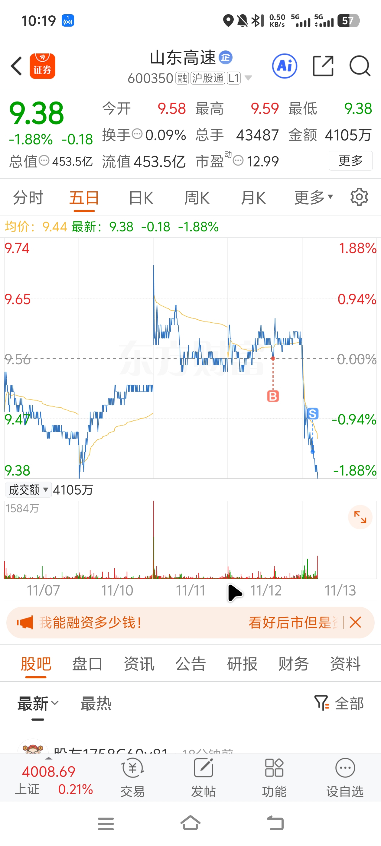 $山东高速(SH600350)$ 外面亏麻了,那么久不来。昨天一来今天就跌。还是那么神奇