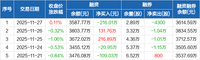 山东高速:融资净偿还216.01万元,融资余额3587.77万元(11-27)
