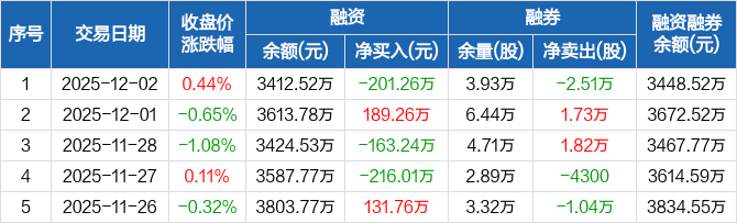 山东高速:融资净偿还201.26万元,融资余额3412.52万元(12-02)