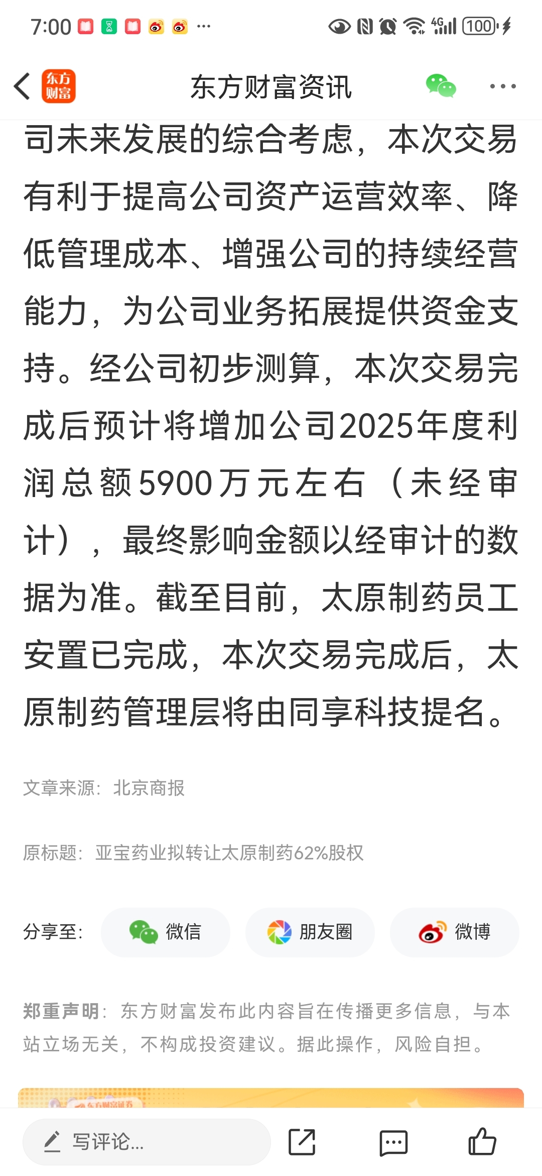 $亚宝药业(SH600351)$ 亚宝药业近期确是利好不断:1,近一个月内创新药二个项目取得注册证书,说明创新药研发取得成功。2,回购股份800万股11月18日注销,3,资产重组卖掉一间亏损多年子公司,导致2025年度增加5900万利润。任武贤真是资本运作高手!