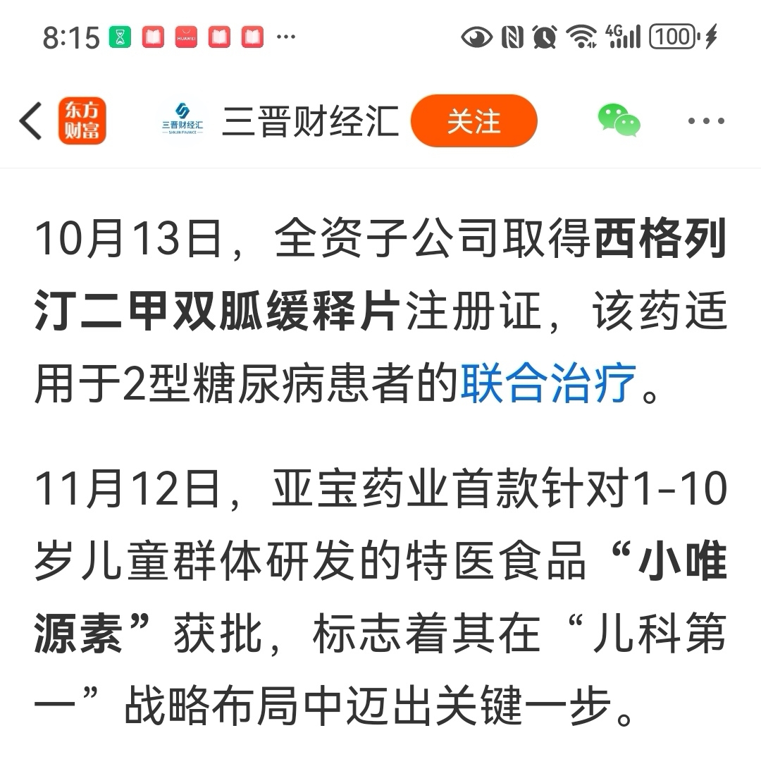 $亚宝药业(SH600351)$ 作为创新药公司亚宝药业,其公司创新药临床试验获批应属于重大利好。静看主力表现吧,因为10月11月亚宝两款新药取得注册证书,主力都是逆反操作,用砸盘庆祝的,正因为主力如此变态,我也是逆向思考,更加坚定了我持股信心。