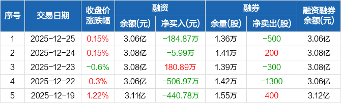 亚宝药业:融资净偿还184.87万元,融资余额3.06亿元(12-25)