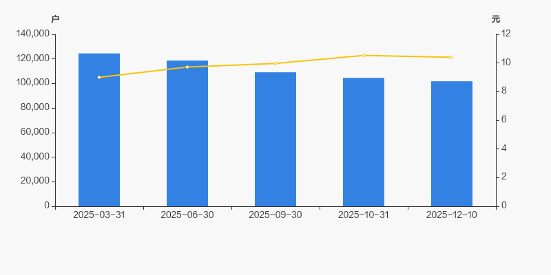 2025年3月31日至今,公司股东户数显著下降,区间跌幅为18.20%。2025年3月31日至2025年12月10日区间股价上涨15.56%。