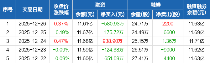 浙江龙盛:融资净偿还580.93万元,融资余额11.61亿元(12-26)