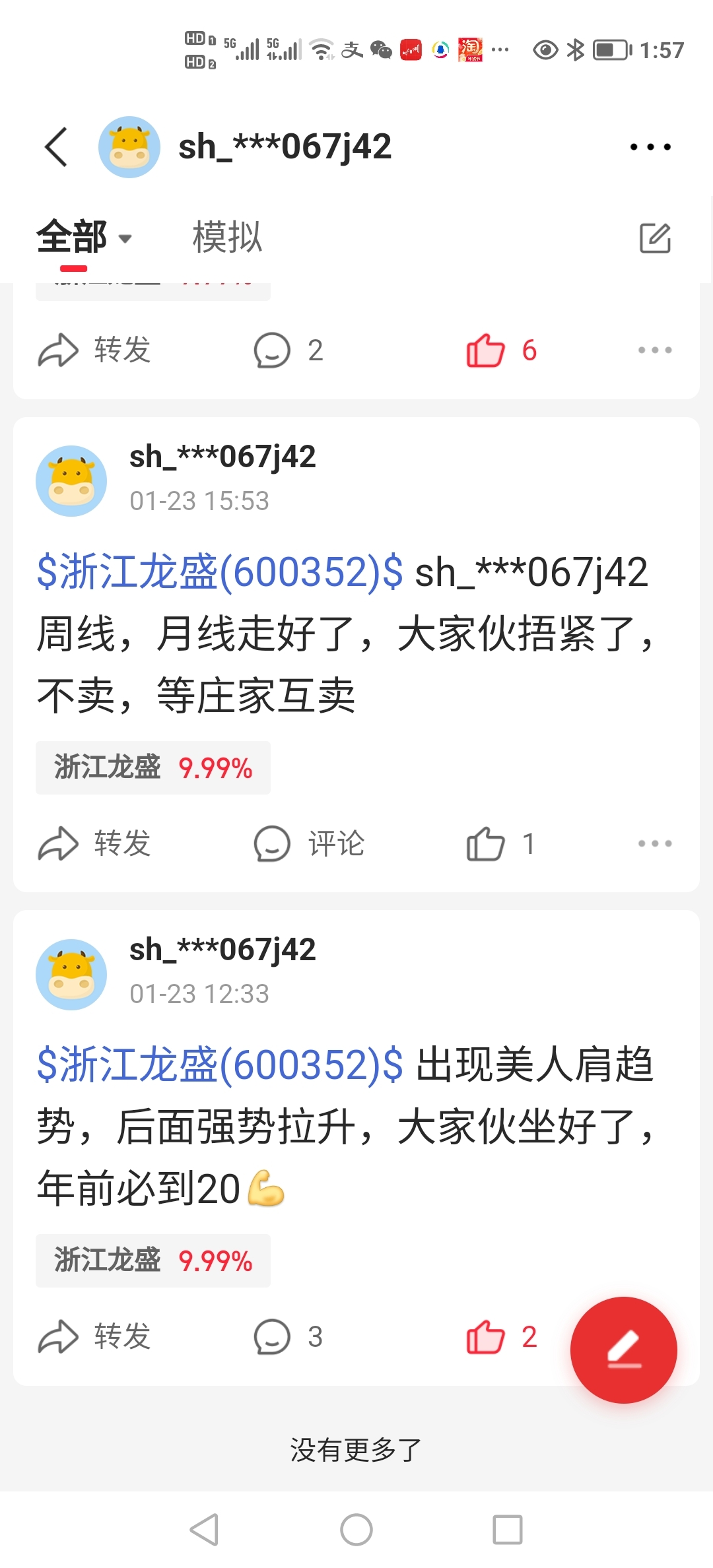 $浙江龙盛(SH600352)$ 浙江龙盛(600352)$ 出现美人肩趋势,后面强势拉升,大家伙坐好了!在1.23号就发了信息,大家伙上车了吧!!