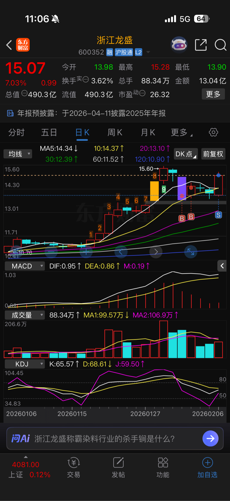 $浙江龙盛(SH600352)$ 告辞。避险了,我回光伏去了