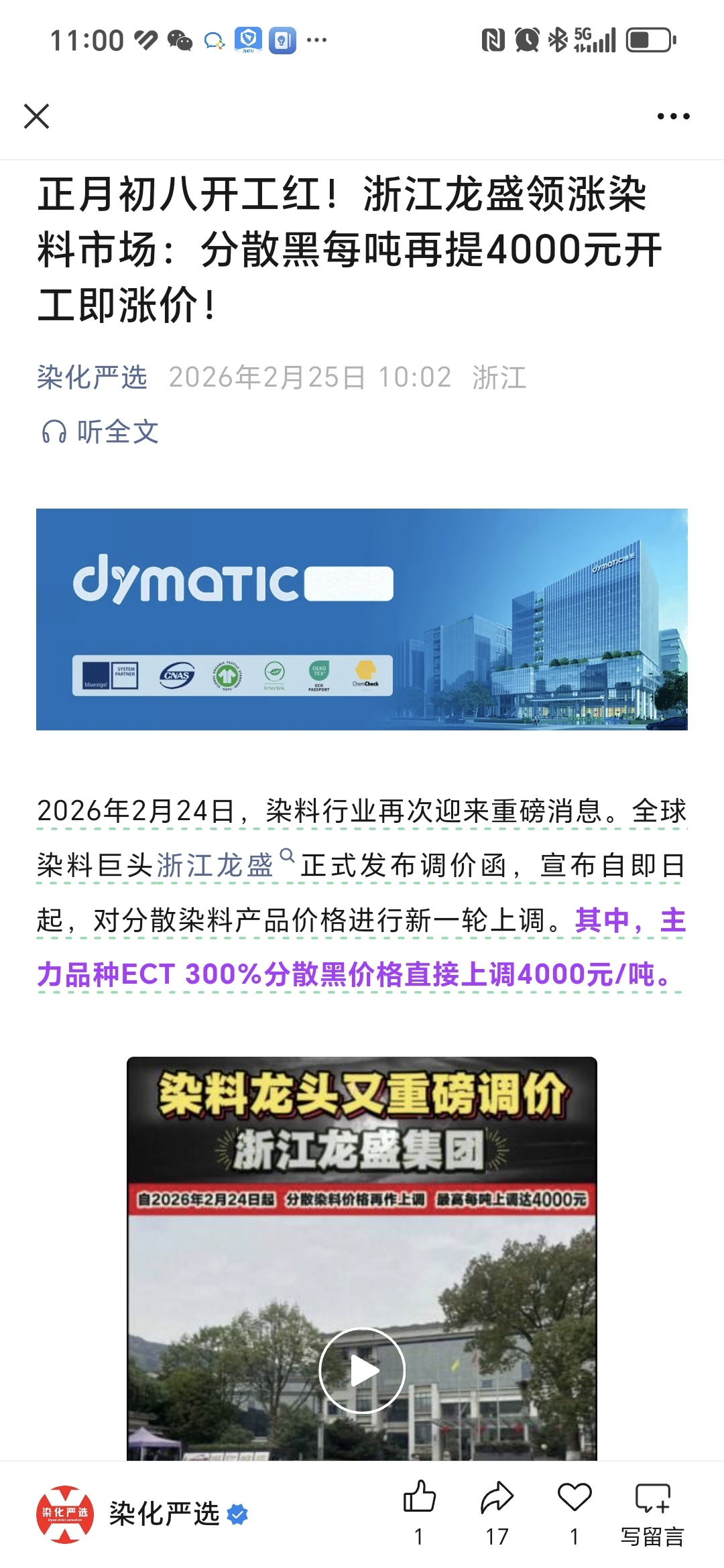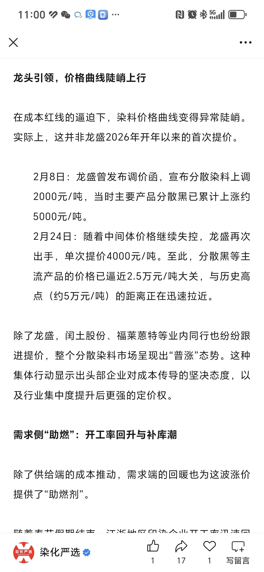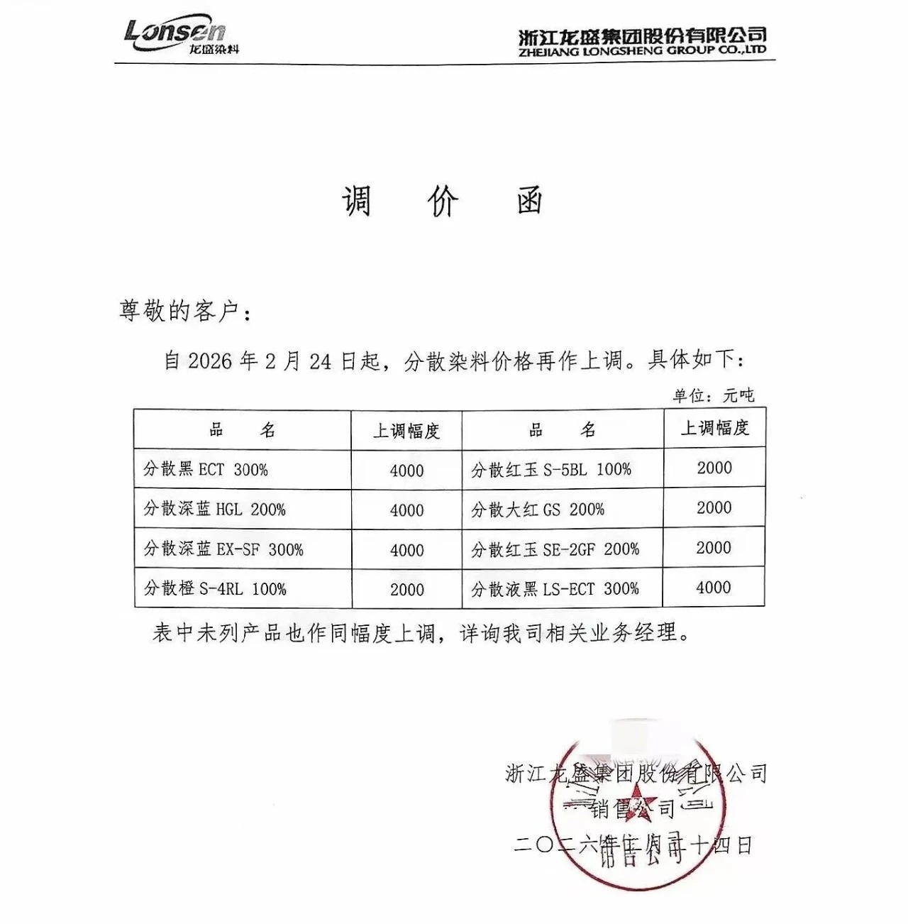$浙江龙盛(SH600352)$ 继续涨价,股价继续涨涨涨