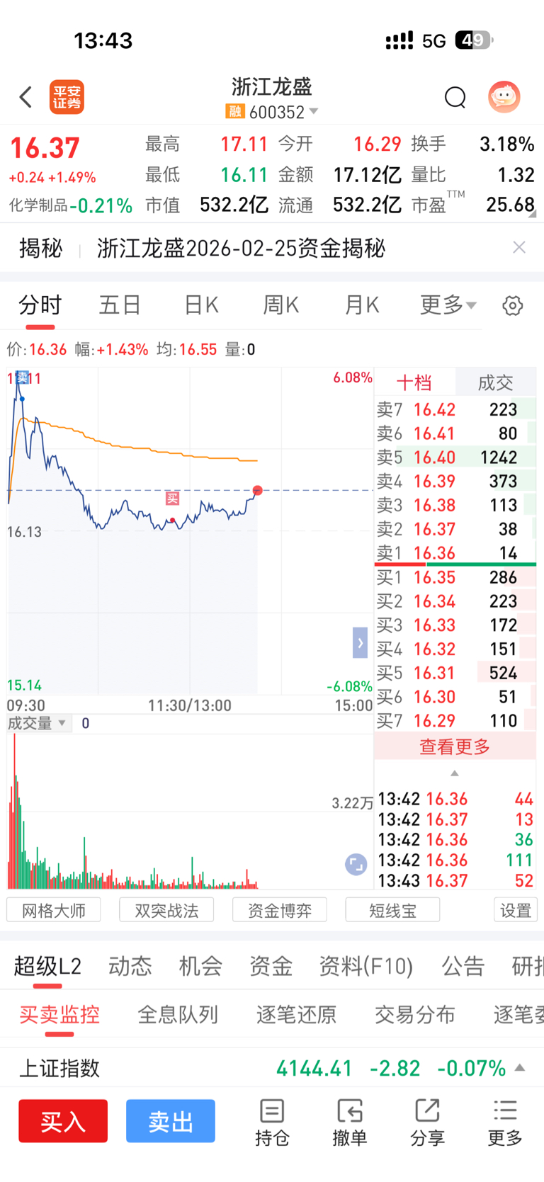$浙江龙盛(SH600352)$ 这主力真是个大好人