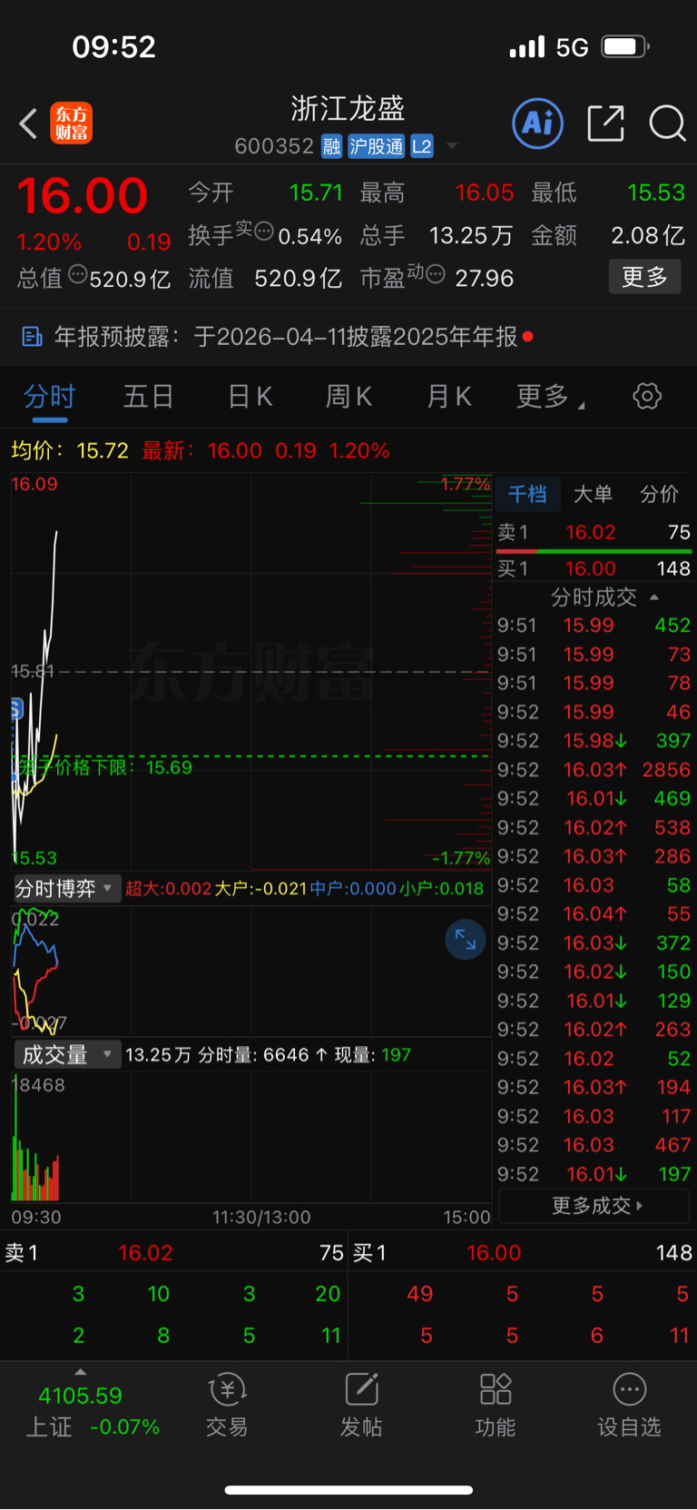 $浙江龙盛(SH600352)$ 大哥跟玩一样我都走了