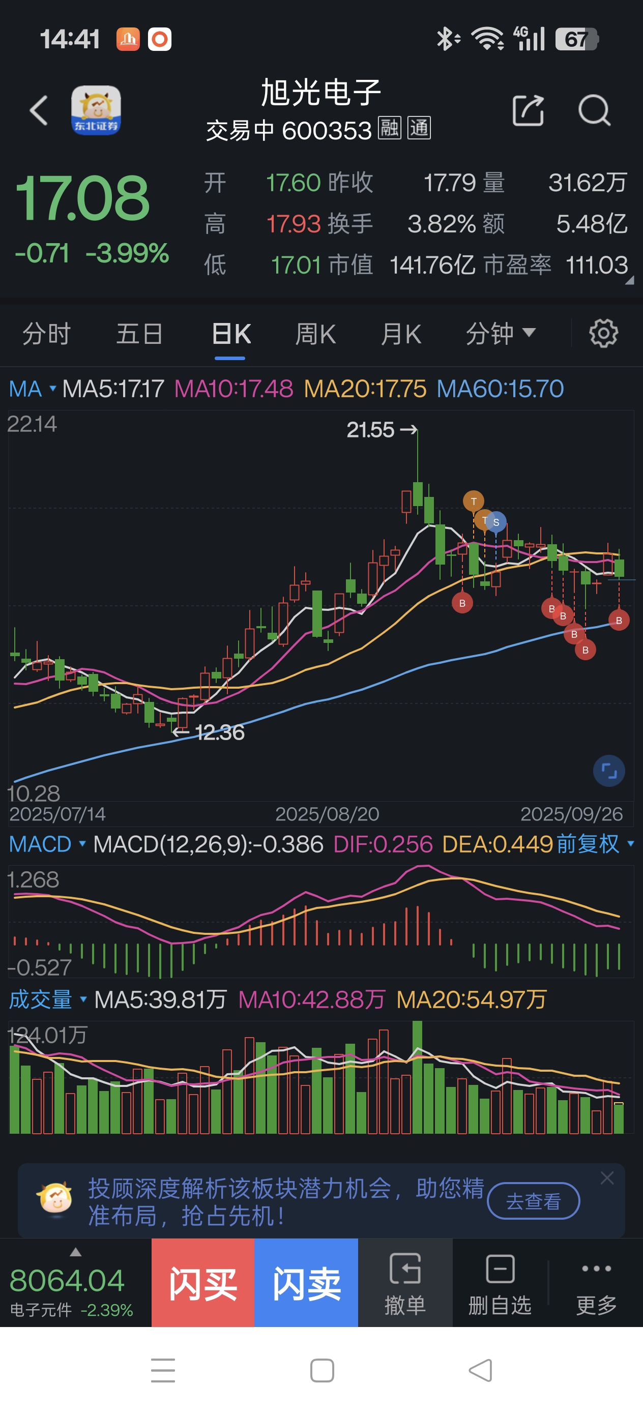 $旭光电子(SH600353)$ 被套的兄弟们 我来了