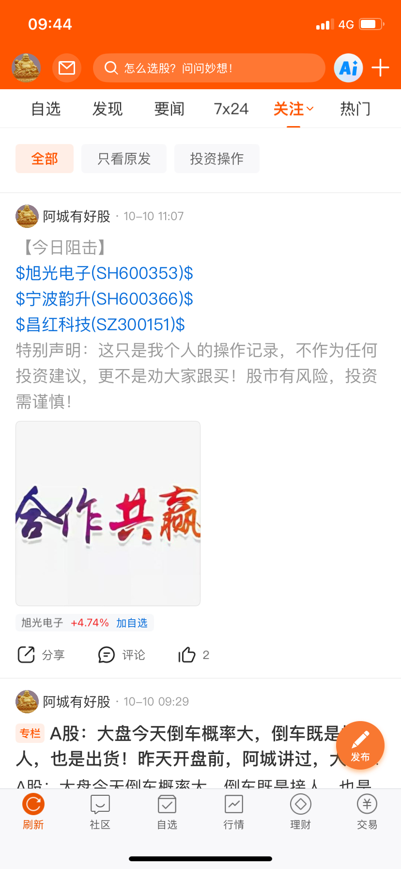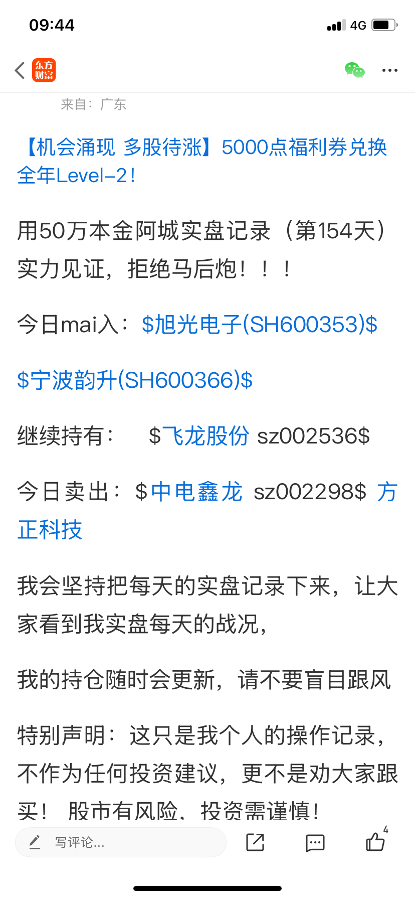 $旭光电子(SH600353)$ 在上周5我们阻击进场,趋势还是可以,由于今天到处绿油油,我们选择落袋为安
