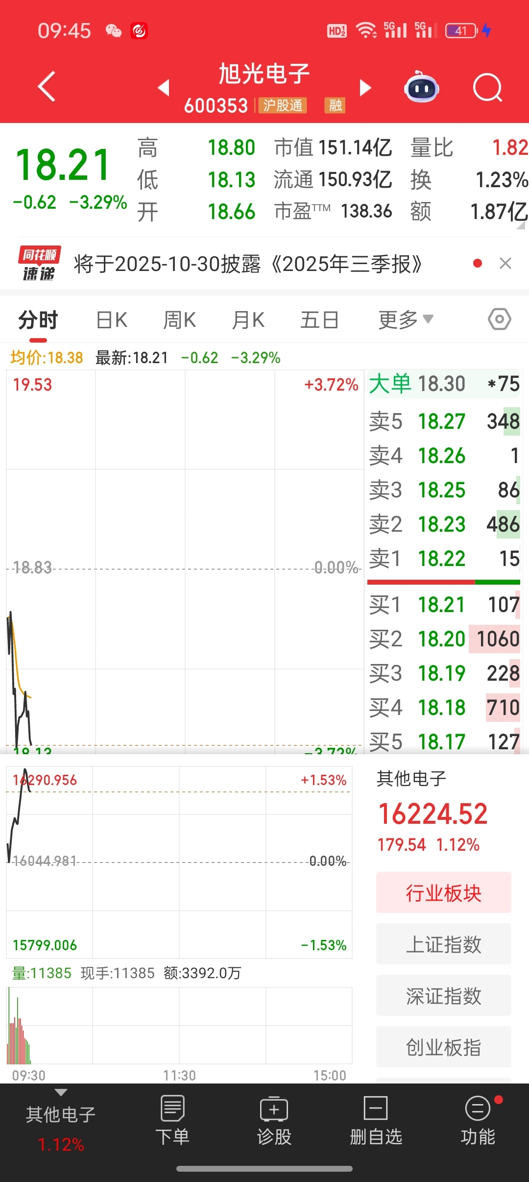 $旭光电子(SH600353)$ 跟大盘反着来,何时才能往前