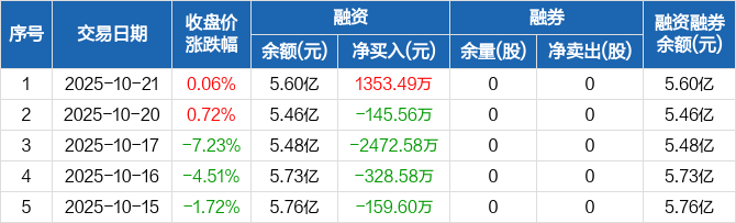 旭光电子:融资净买入1353.49万元,融资余额5.6亿元(10-21)