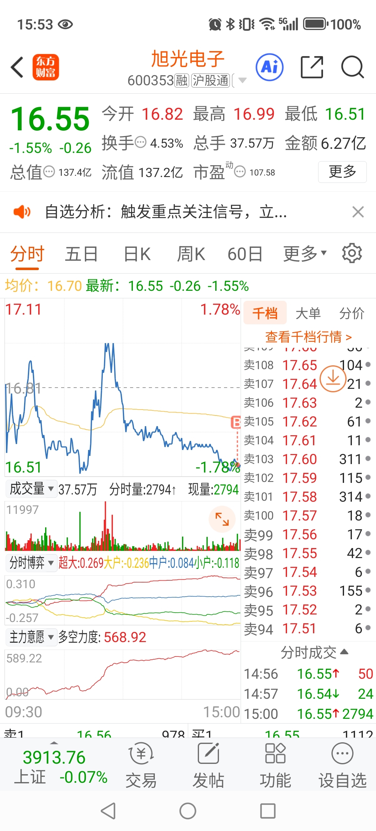 $旭光电子(SH600353)$ 尾盘买入,坐等拉升!