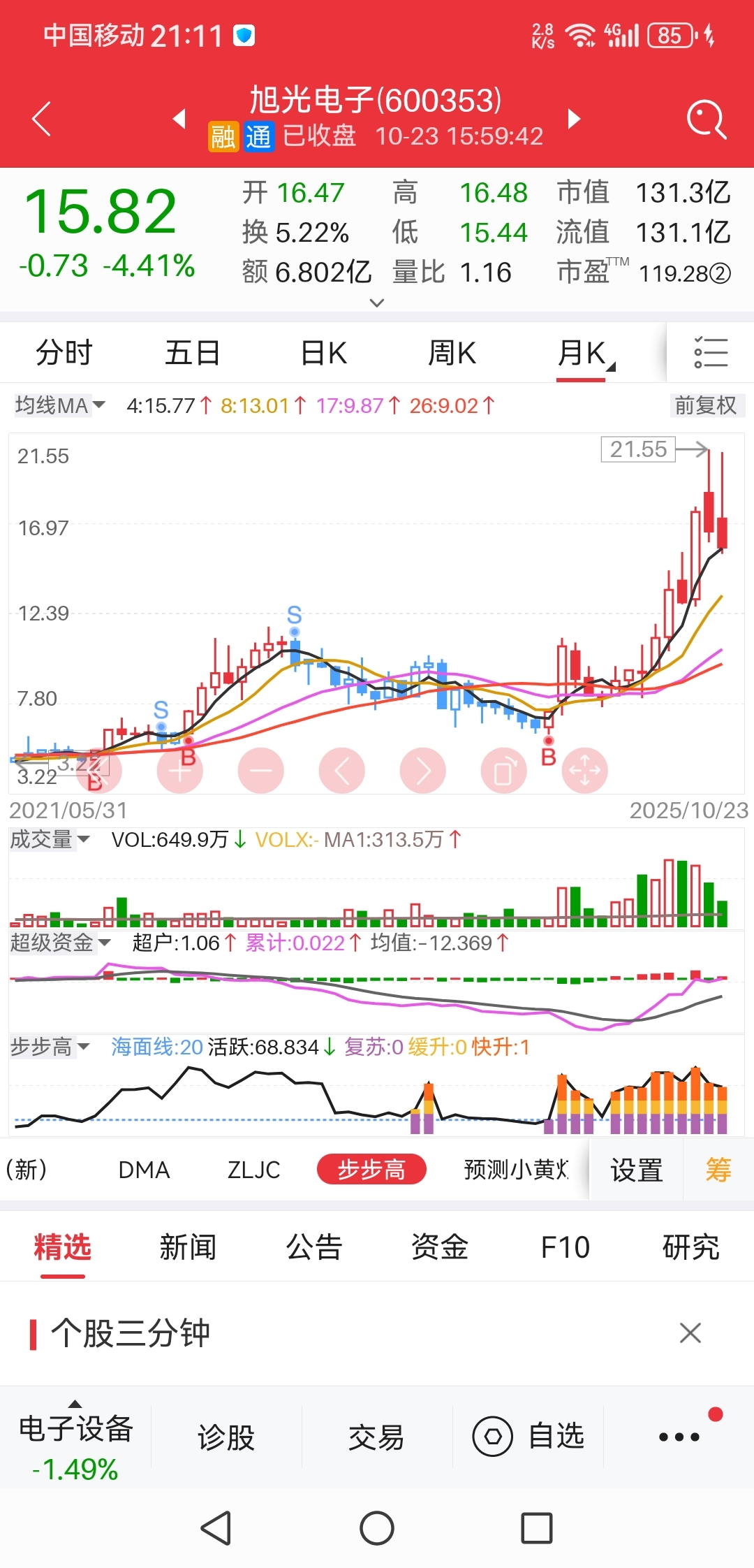 $旭光电子(SH600353)$ 日线KDj都负数了,而且月线刚好落在15.77元,调整差不多了吧
