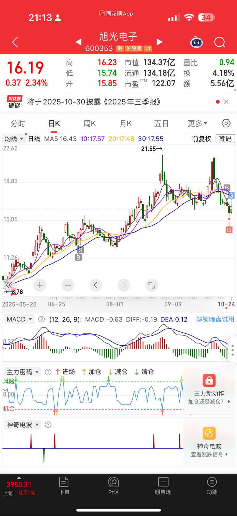 $旭光电子(SH600353)$ 我感觉这几天的下跌可能跟业绩挂钩,跟我以前买的武汉凡谷一个鸟样连跌7天业绩出来后吃个跌停,赚了1毛钱跑路了,感觉有雷