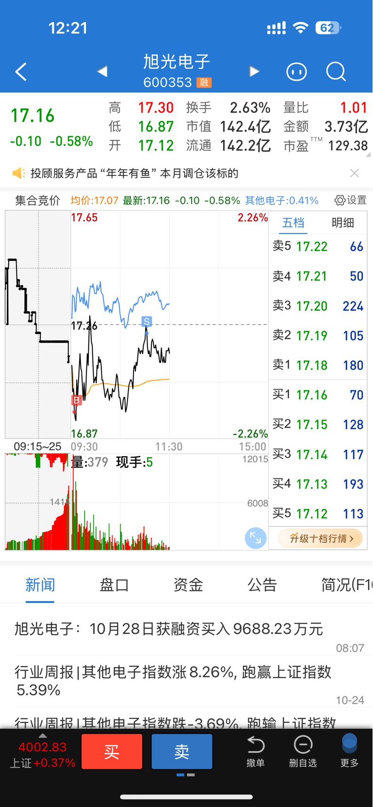 $旭光电子(SH600353)$ 昨天尾盘卖出一半,今日跌一点几买回,赚一点几卖出,今天这个趋势,如果主力不发力,后面很难超过昨日收盘价。还要往下面走的趋势。所以别盲目操作