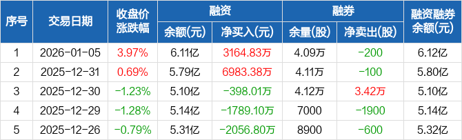 旭光电子:融资净买入3164.83万元,融资余额6.11亿元(01-05)
