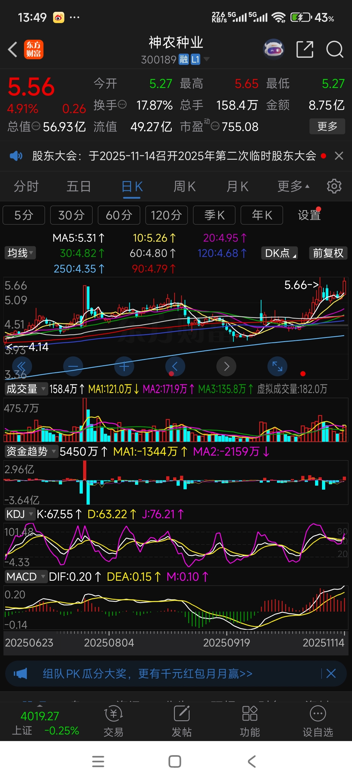 $敦煌种业(SH600354)$ 它爹神龙种业大涨