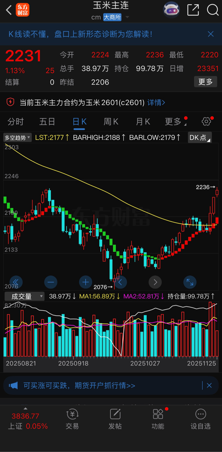 $敦煌种业(SH600354)$ 玉米期货连续上涨,敦煌种业主营玉米