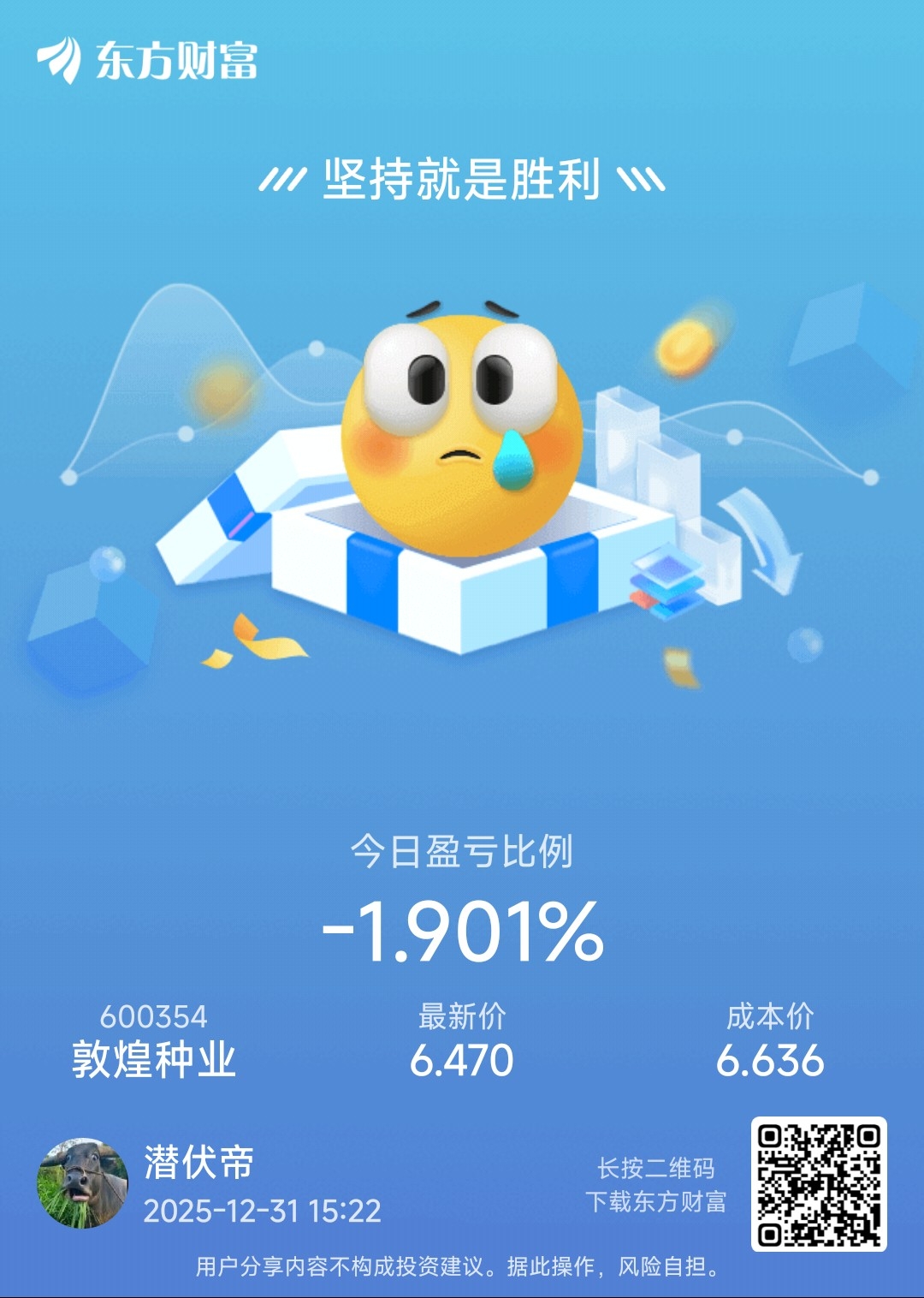 $敦煌种业(SH600354)$ 被套两个点,再跌10个点加一倍仓位!